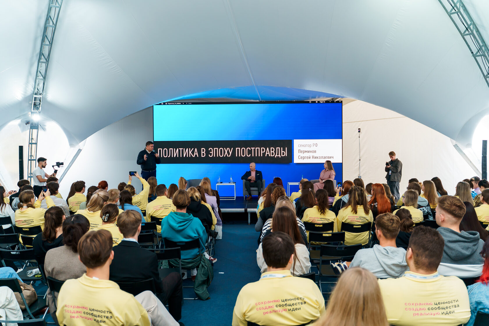 Экспертами дискуссии выступили сенатор Российской Федерации от Ленинградской области Сергей Перминов и политик, общественный деятель Николай Стариков. Участники — свыше 350 молодых людей Северо-Западного федерального округа. Политика в эпоху постправды являлась ключевой темой обсуждения.